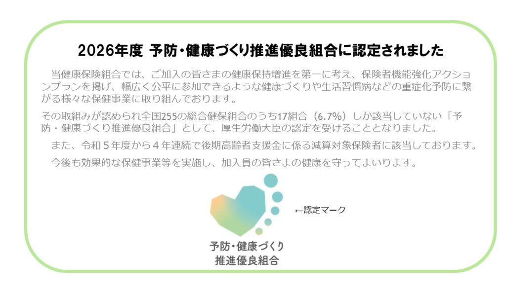 当組合では、加入員の皆さまがより健康で充実した生活を送ることができるよう、健康・医療情報の提供、メタボリックシンドロームに着目した特定健診の実施など、「データヘルス計画」に基づく、以下の各種補助金及び重症化予防対策等の事業を行っておりますので、積極的にご活用ください。