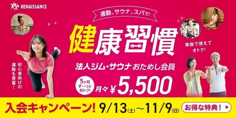 スポーツクラブルネサンスから「秋の入会キャンペーン」のご案内です。